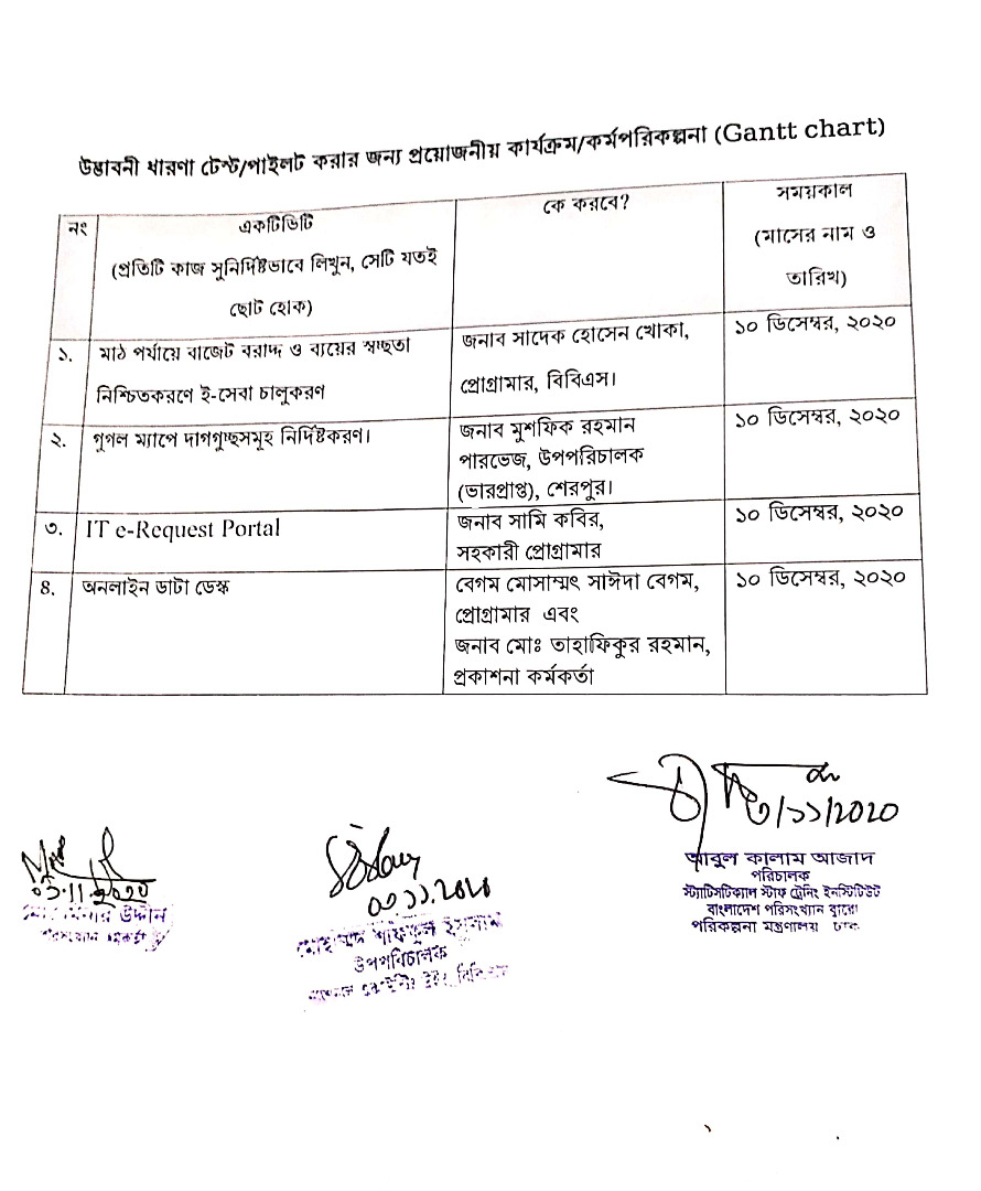 | উদ্ভাবনী ধারণা টেস্ট/পাইলট করার জন্য প্রয়োজনীয় কার্যক্রম/কর্মপরিকল্পনা (Gantt chart) |
