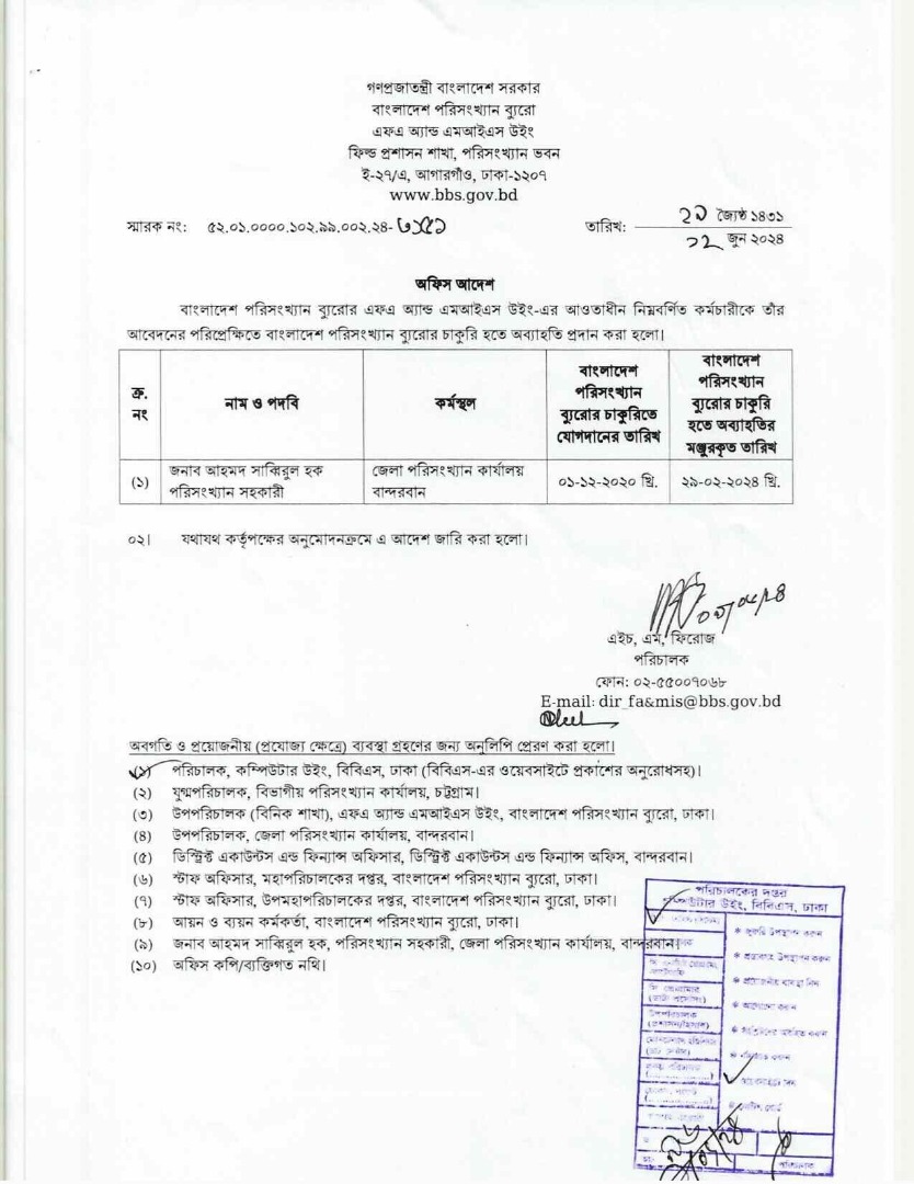 | জনাব সাব্বির আহমেদ, পরিসংখ্যান কর্মকর্তা এর অবমুক্তি | ৫২.০১.০০০০.৫০১.৪০.৯৭৪.২৪.৩৪২ তারিখ: ২২-১২-২০২৫ |