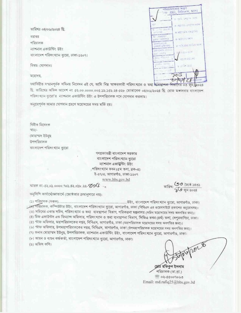 | জনাব মুহাম্মদ হারুন, সহকারী পরিসংখ্যান কর্মকর্তা এর যোগদান | ৫২.০১.০০০০.৫০১.৪০.০৫৬.২৫.৬৫৫তারিখ: ০২-০৭-২০২৫ |
